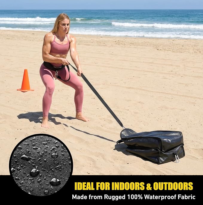 Robust, Waterproof Material: As this twin-weight sled is built for harsh, rough use, Elite Sports has ensured it remains intact for maximum durability and performance. This heavy-duty fitness tool is made of ultra-durable, PU-PVC-coated 100% polyester that is water-resistant, suitable for all weather and surface conditions. The durable construction allows for vigorous outdoor training sessions, ensuring both high functionality and longevity.