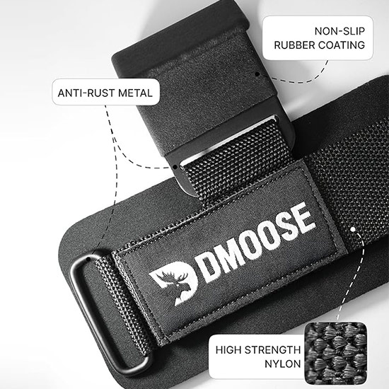 ENHANCE WORKOUT PERFORMANCE AND FORM: Adjustable fit ensures a secure hold with DMoose hand grips for weight lifting, while the ergonomic design redistributes weight evenly. Improve form, reduce injury risk & perform lifts, like deadlifts and rows, with better control, comfort & efficiency.